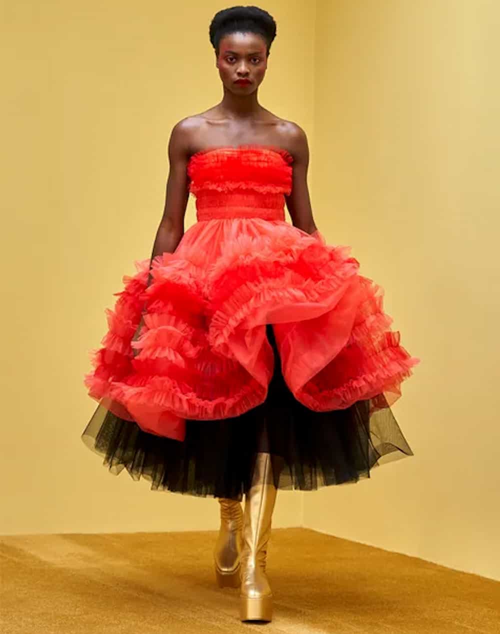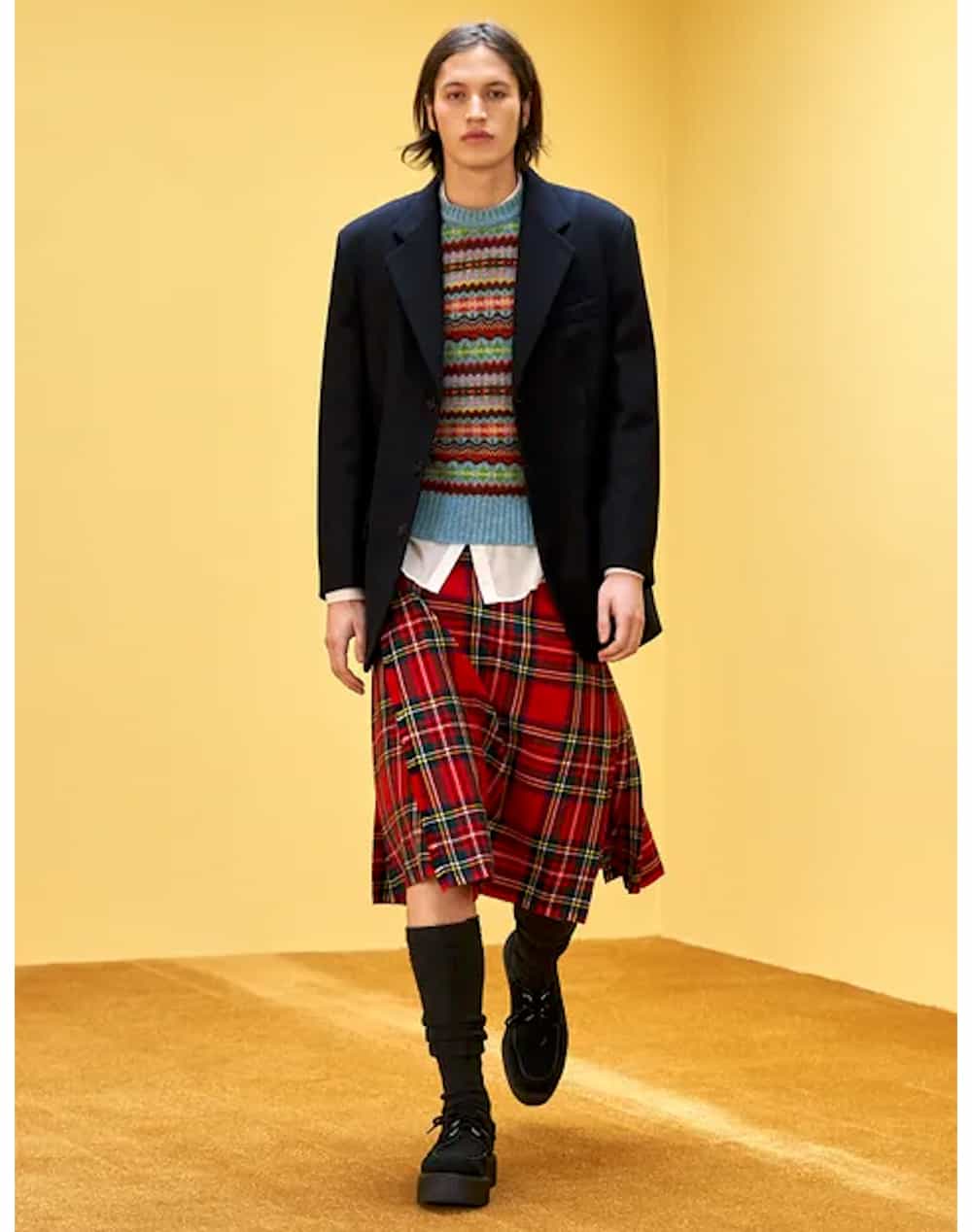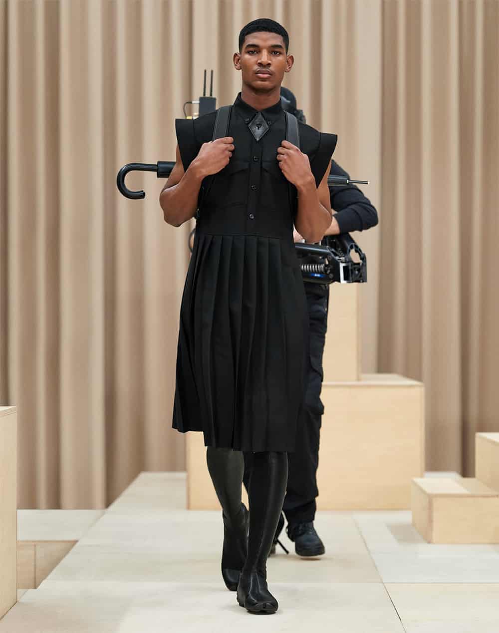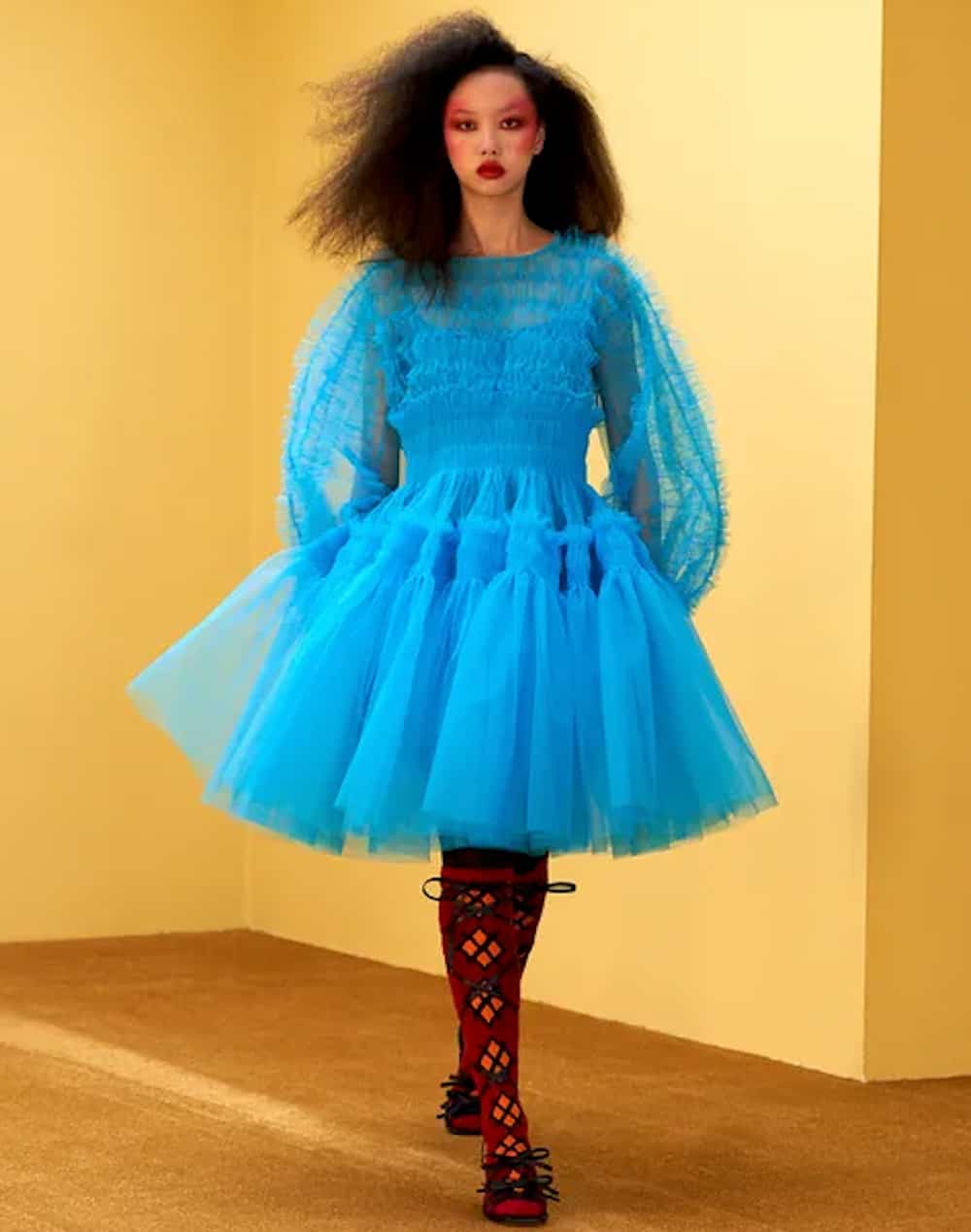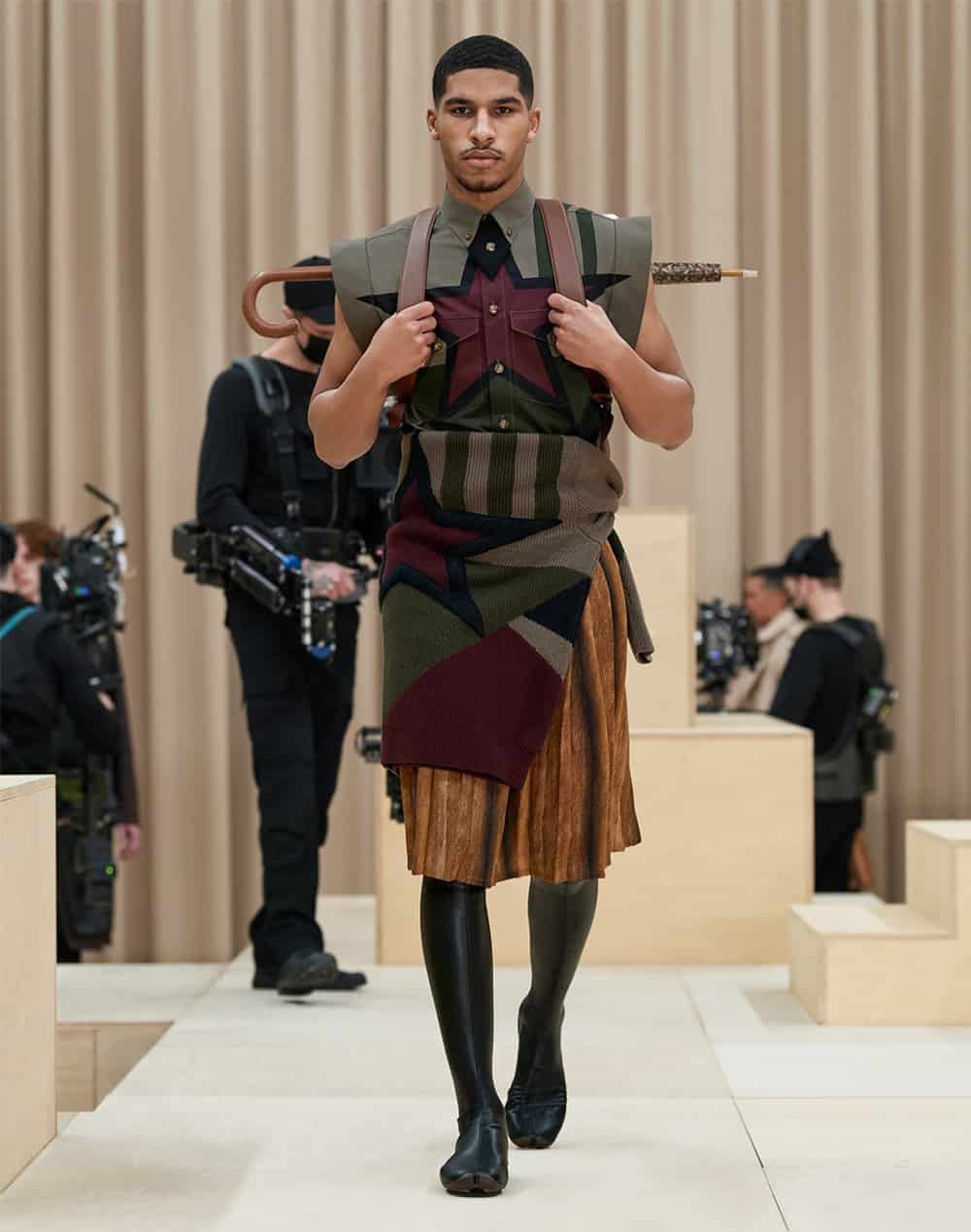 Сомнению гендерные нормы подвергла и Молли Годдард – она нарядила женщин в феминный, но при этом типично мужской предмет гардероба. Речь, конечно же, о шотландском килте, в котором на её показе красовались и мужчины, и женщины. Сама же коллекция бренда Molly Goddard была создана на фоне тоски дизайнера по таким привычным местам, как библиотеки и рынки, где можно наблюдать за людьми и черпать вдохновение. Ещё один дизайнер, нарядивший мужчин в юбки, правда, на этот раз, вовсе не в килты, а во что-то явно перекочевавшее из женского гардероба, – это Рикардо Тиши, креативный директор, пожалуй, самого известного британского бренда Burberry.