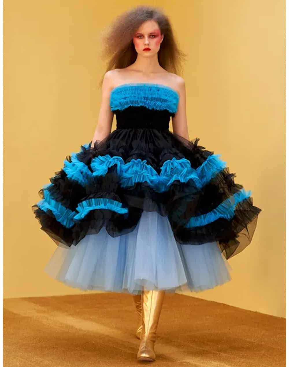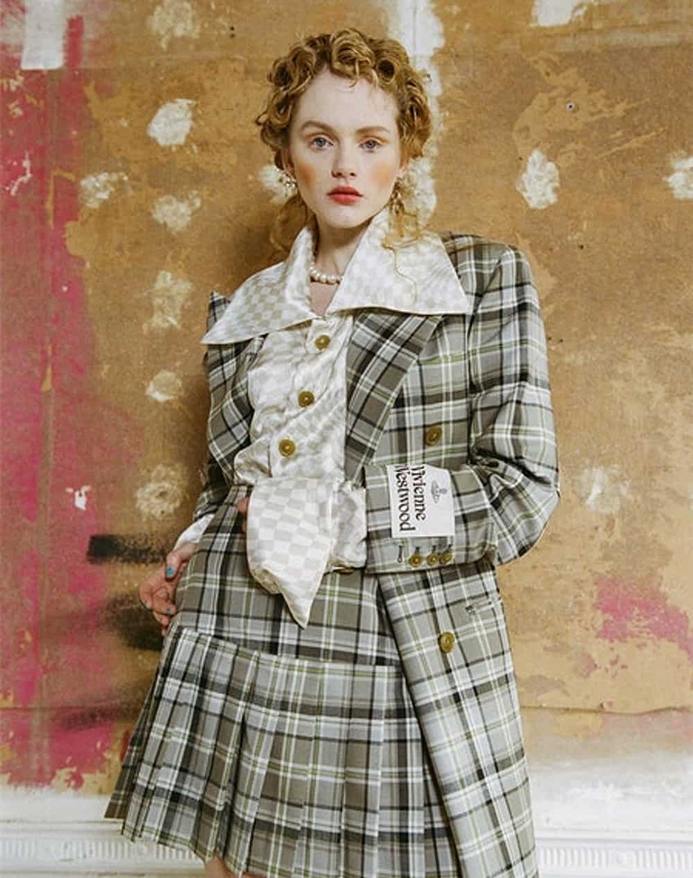 Ну и, разумеется, совсем не скучную коллекцию представила главная британская бунтарка Вивьен Вествуд. На этот раз панк-дива вдохновилась картиной Франсуа Буше «Дафнис и Хлоя» в стиле рококо, только вот сделала она это не в первый раз – картина уже оказывалась в центре её коллекции 31 год назад. Интересно то, что более глобальным вдохновением Вествуд служит камерный лондонский музей Собрание Уоллесса, где как раз таки представлена большая коллекция искусства в стиле рококо. Про этот удивительный музей мы рассказываем здесь. Хоть Вивьен Вествуд и обращается к эстетике и образам XVIII века, она продолжает идти в ногу со временем: эта коллекция обращает особое внимание на проблему «sustainability» (подробнее о «sustainability» в моде читайте в нашей статье). Дизайнер использовала новые технологии и переработанные материалы при создании этих роскошных образов.