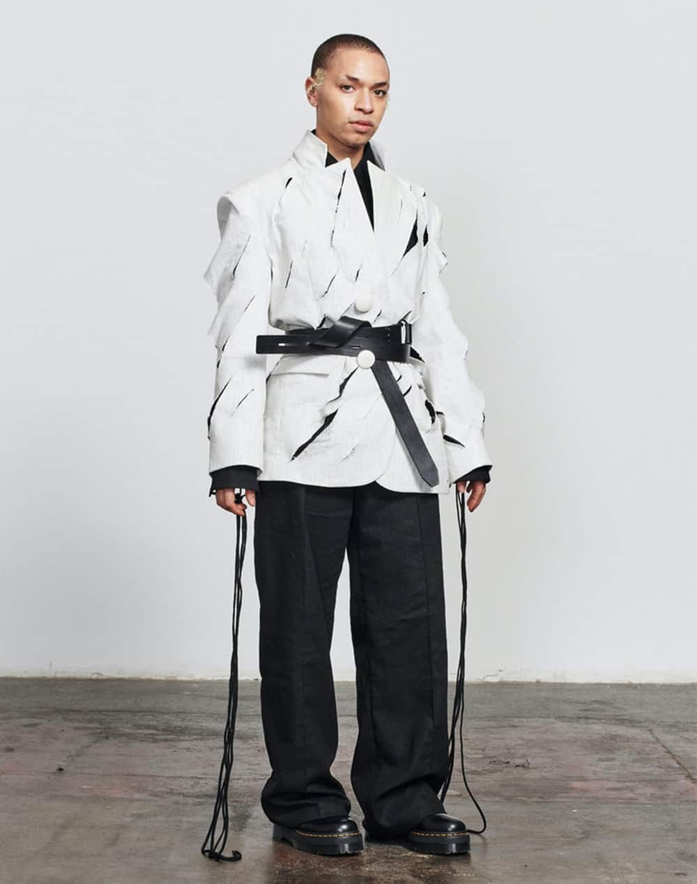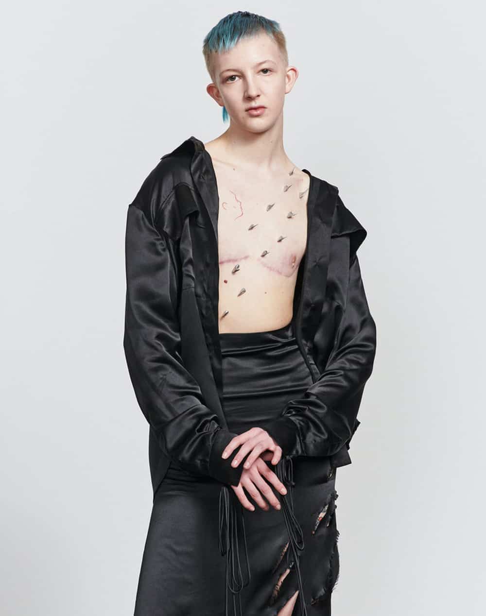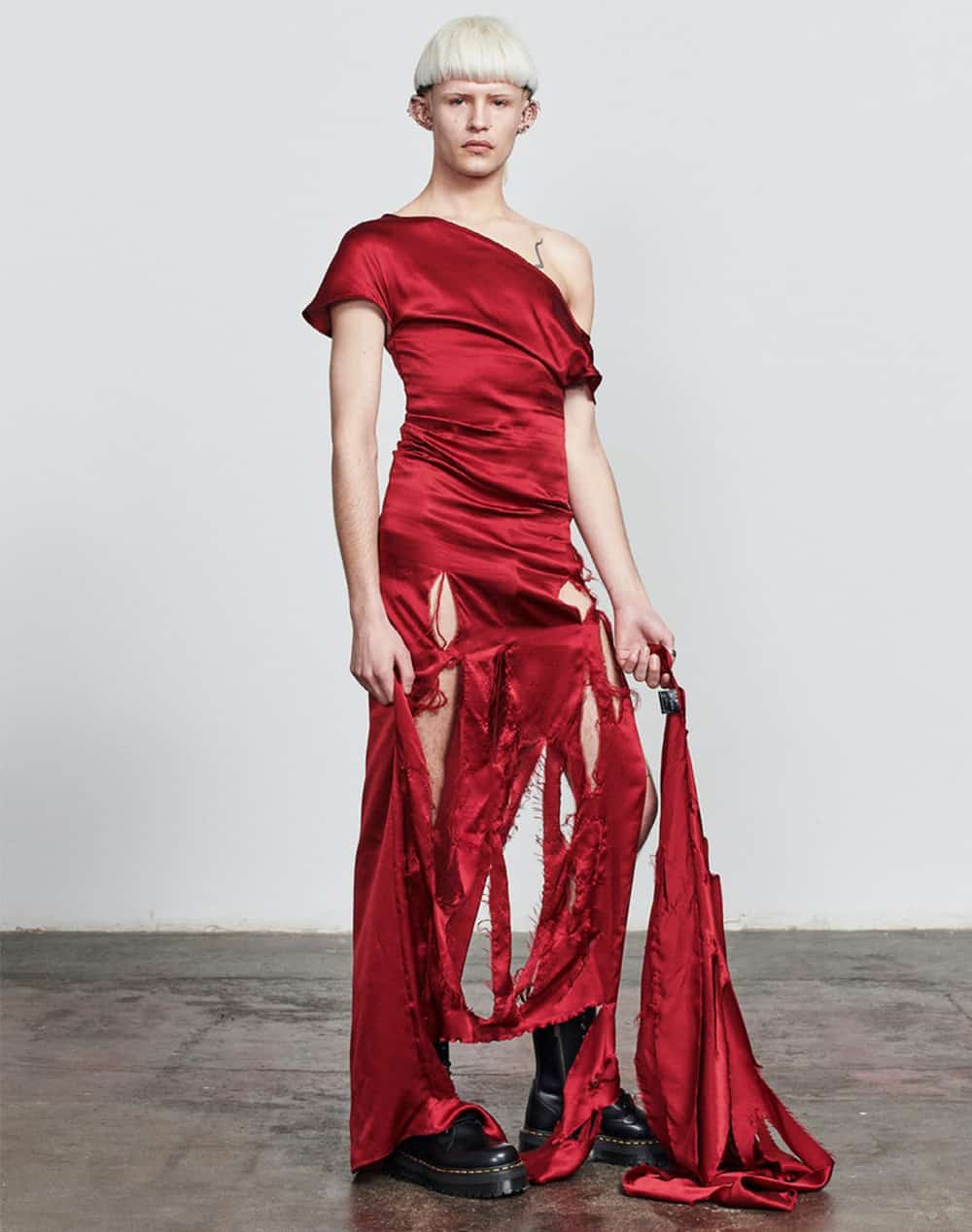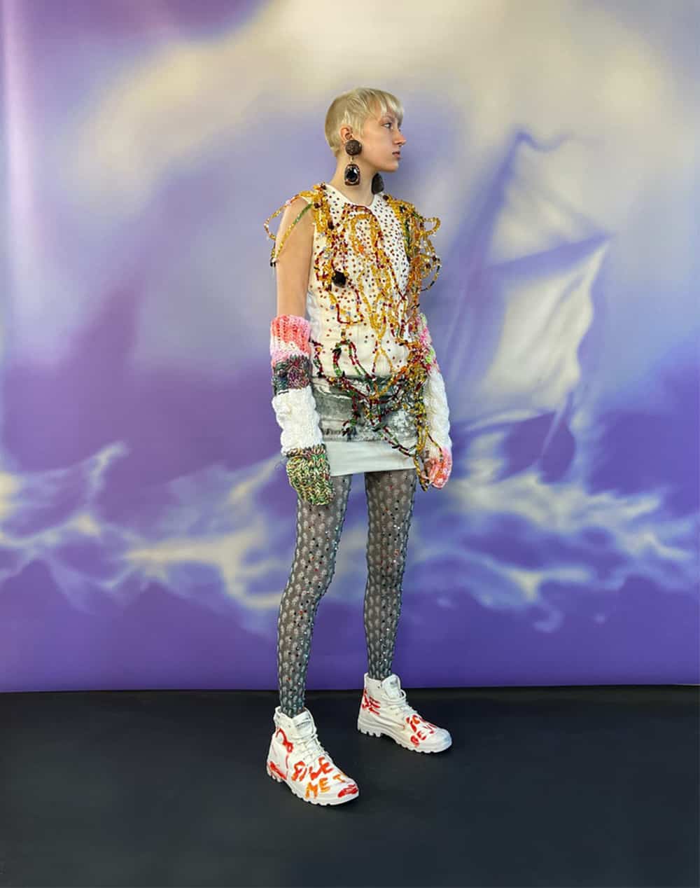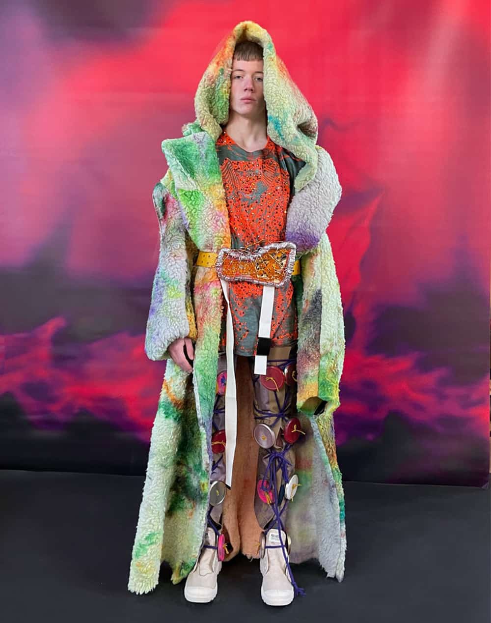 К вопросу гендера также обратился бренд Art School, посвятивший коллекцию скончавшейся в январе шотландской певице Sophie и ЛГБТ-сообществу. Свой показ они назвали Ascension – вещи из этой коллекции не соответствуют общепринятым бинарным нормам, впрочем, как и сама презентация. «Мировое квир-сообщество невероятно сильно пострадало от пандемии, а также от политической и социальной ситуаций, которые сложились в Великобритании и в Америке, – рассказывает дизайнер Art School. – Я очень хотел создать что-то такое, что служило бы маяком надежды».