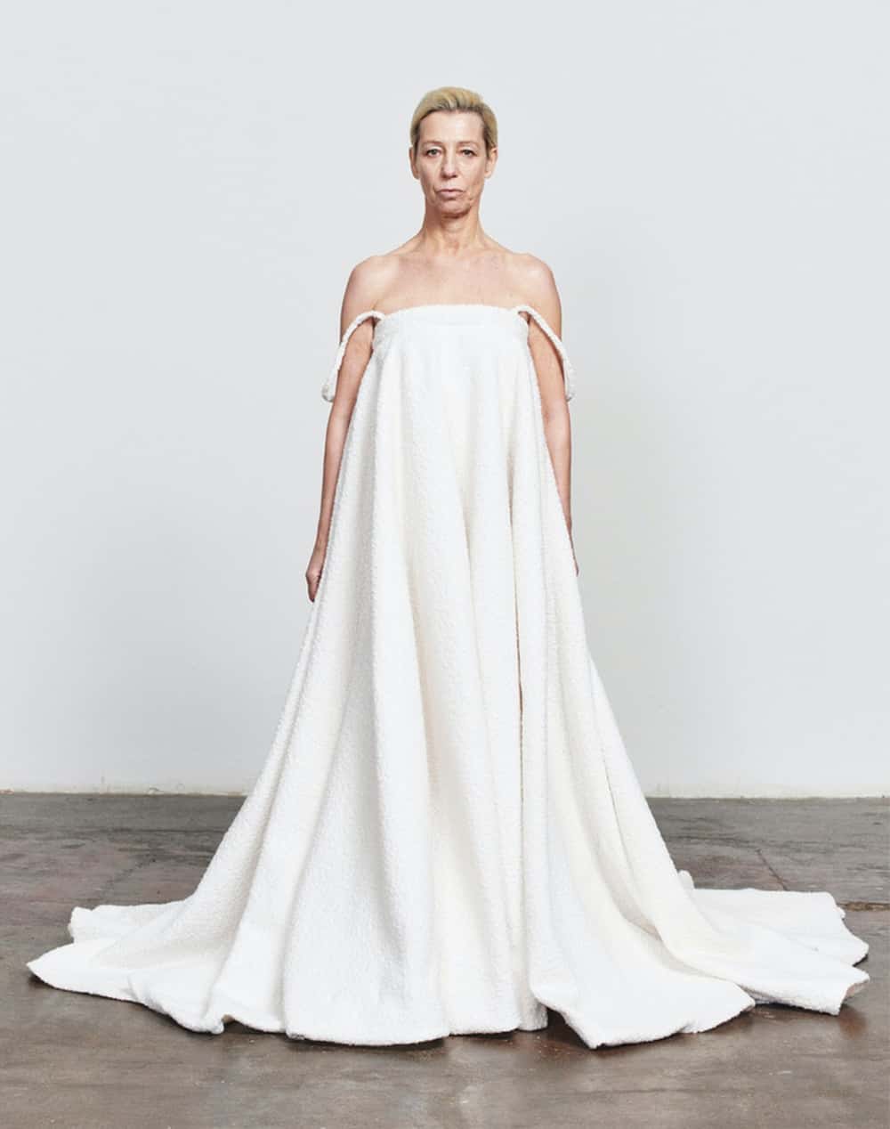 «В данный момент мы все будто бы прячемся от внешнего мира в себе; я хотела позаботиться об этой хрупкости, но при этом дать ей более прочную “раковину”. Мне нравится, как в начале коллекции вещи кажутся тесными и закрытыми, но со временем женщина расцветает до такой степени, когда кожа лишь пристёгнута к наряду. Раковина ломается, но тюль сохраняет свою силу», – так свою коллекцию описала Симон Роша.