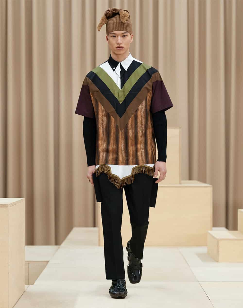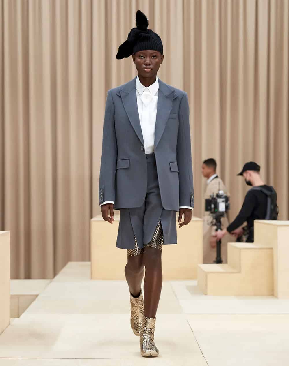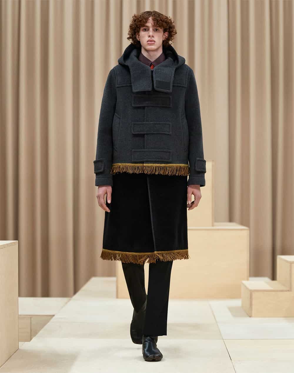 Само шоу (без зрителей) прошло во флагманском бутике Burberry на Риджент-стрит, пустующем из-за бесконечных ковидных ограничений. Эту коллекцию с нетерпением ждали модные критики, ведь это был дебют Тиши – до этого для британского бренда он создавал только женские или смешанные коллекции. Дизайнер назвал это творение Escapes, что объясняется его стремлением к природе. Коллекция отсылает к началу XX века, когда в Великобритании появилась некая субкультура, подразумевающая особую любовь к окружающей среде. Именно она, а также британское ремесленное мастерство, вдохновляли итальянского дизайнера.