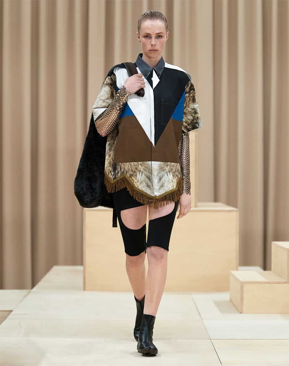 В Escapes присутствуют различные элементы, напоминающие животных: например, шапки-зайцы или ботинки, чем-то похожие на копыта. Конечно же, в первую очередь Тиши сфокусировался на уличной одежде, которая и преобладает в этой коллекции, и, разумеется, не обошлось без классических тренчкотов, являющихся визитной карточкой Burberry. Однако вечную классику Тиши не оставил неизменной – вместо поясов его тренчкоты повязаны шёлковыми шарфами. Ну и нельзя не вернуться к вышеупомянутым мужским юбкам, ставшим одним из ключевых элементов этого показа. Сам Тиши описал коллекцию так: «Saville Row в сочетании с женским гардеробом. Подумайте о Дэвиде Боуи, Майкле Кларке, Ли Бауэри…».