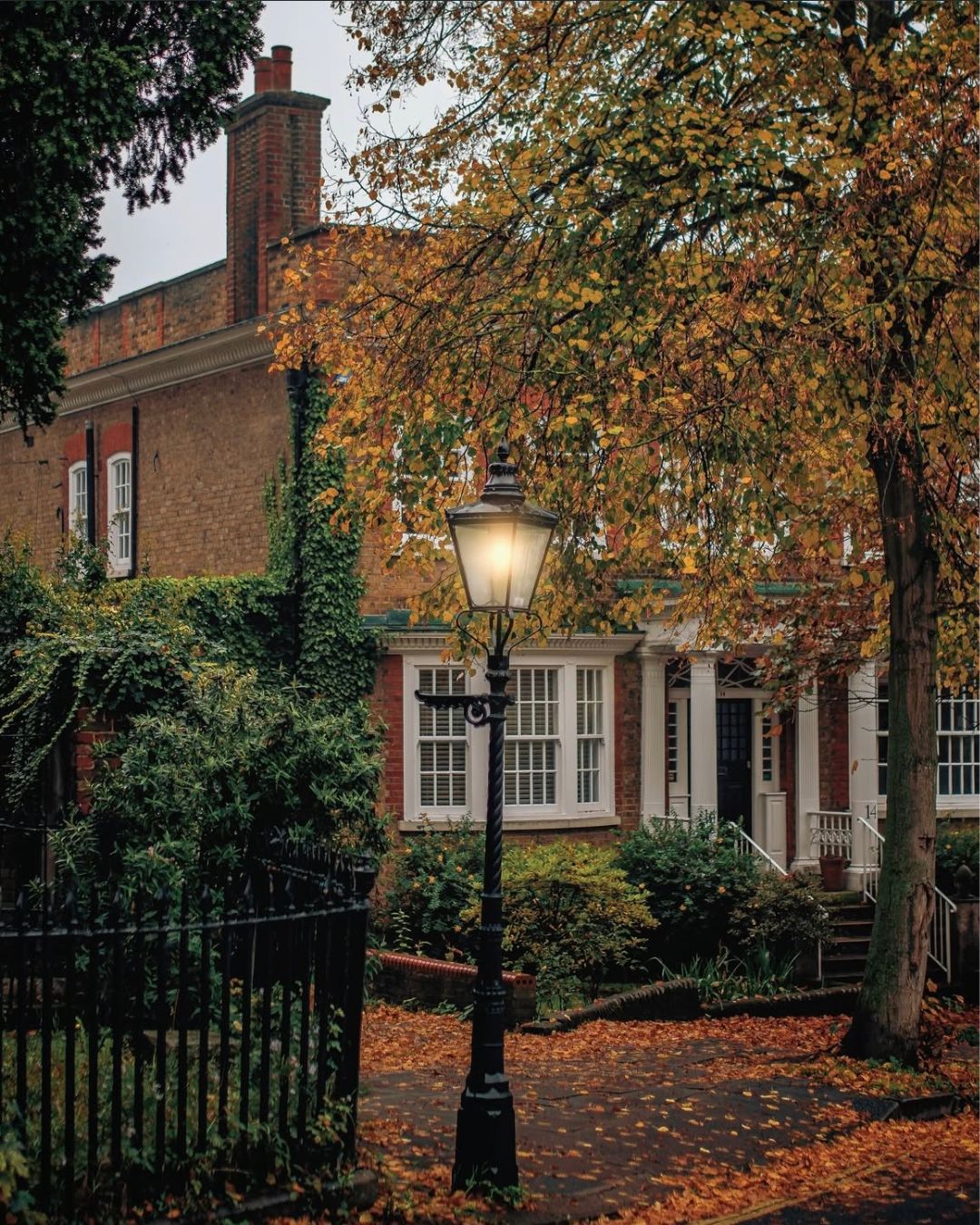 В Хэмпстеде стоит обратить внимание на Hogarth Court и Fitzjohn’s Avenue. Hogarth Court — тихий дворик, где в октябре стены и деревья пылают бордовыми и золотыми оттенками, создавая камерный, уютный уголок для прогулки и фотографий. Fitzjohn’s Avenue — широкая аллея с викторианскими домами, превращающаяся осенью в тоннель из жёлтых и оранжевых крон.