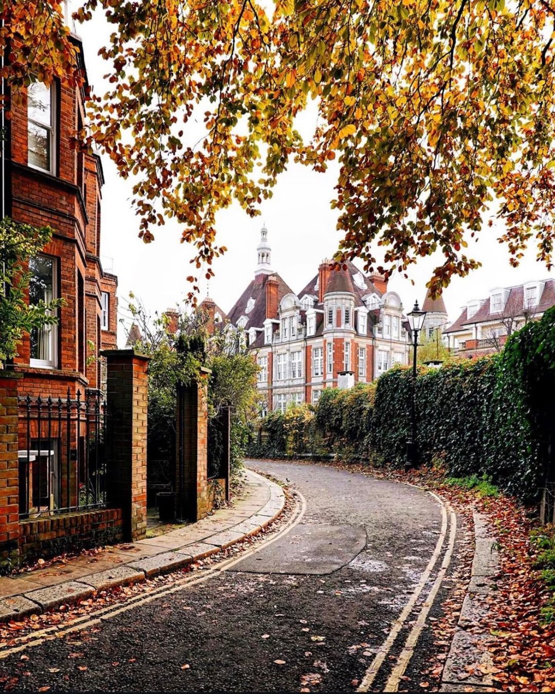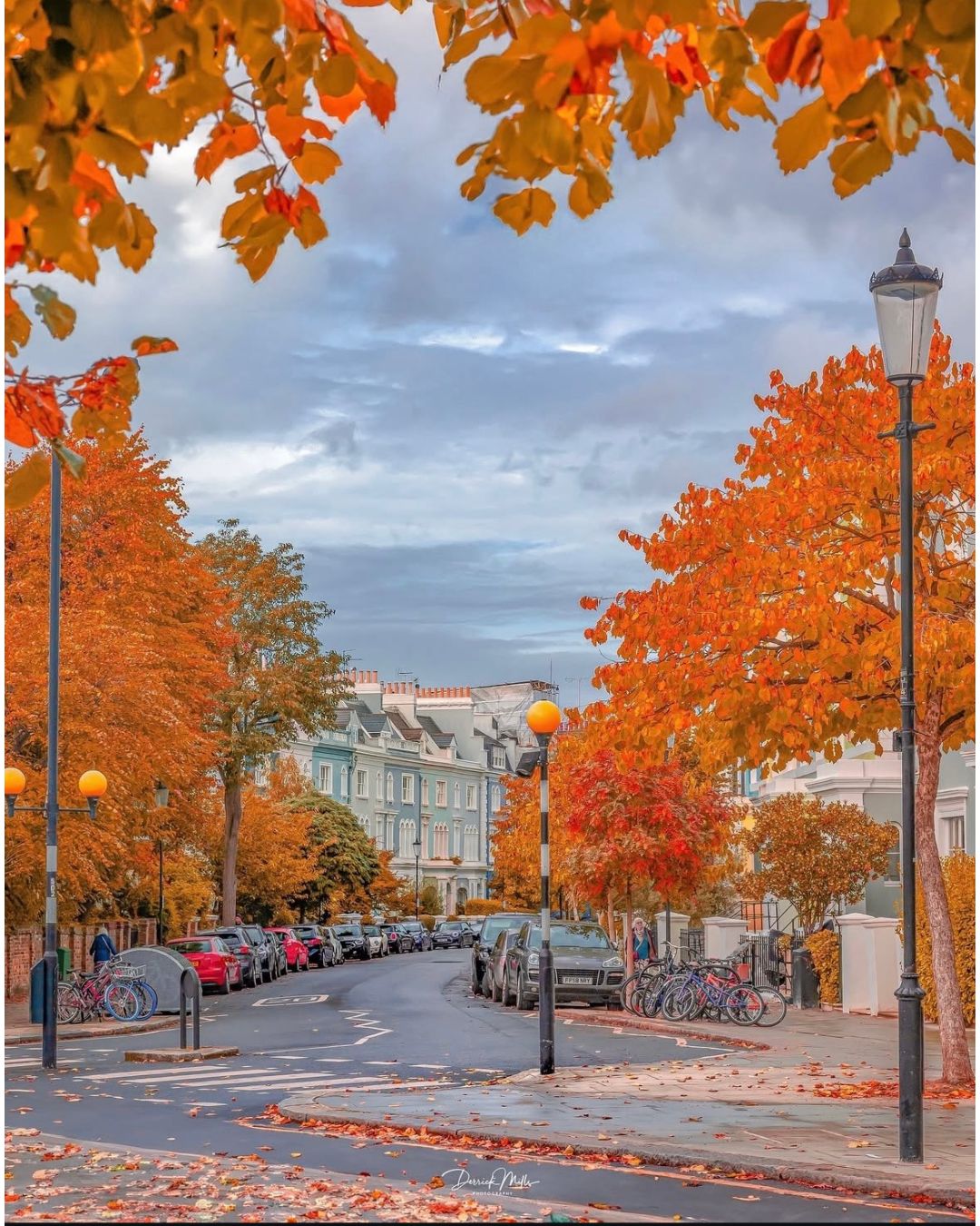 Ноттинг-Хилл — один из самых колоритных районов Лондона, который особенно хорош осенью. Узкие улочки с разноцветными домами становятся ещё ярче на фоне опавших листьев. Обратите внимание на Portland Road с её разноцветными фасадами и элегантные викторианские дома на Stanley Crescent.