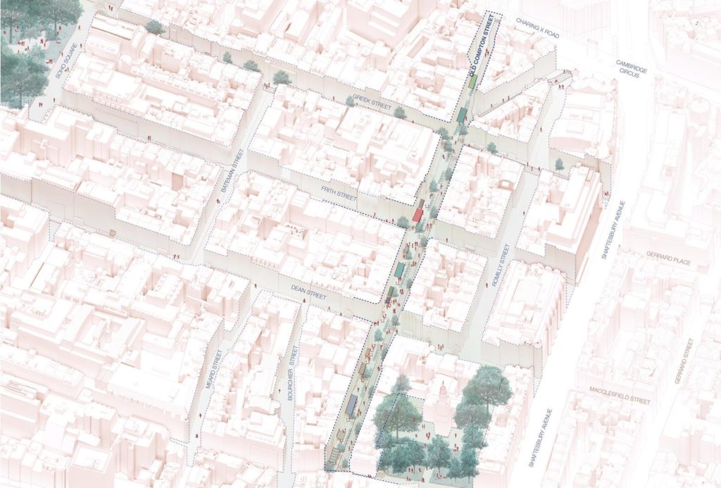 Авторы проекта также предлагают изменить инфраструктуру в других частях Сохо, внедрив “shared surfaces” — ровные покрытия без высоких бордюров, удобные для колясок и маломобильных граждан.