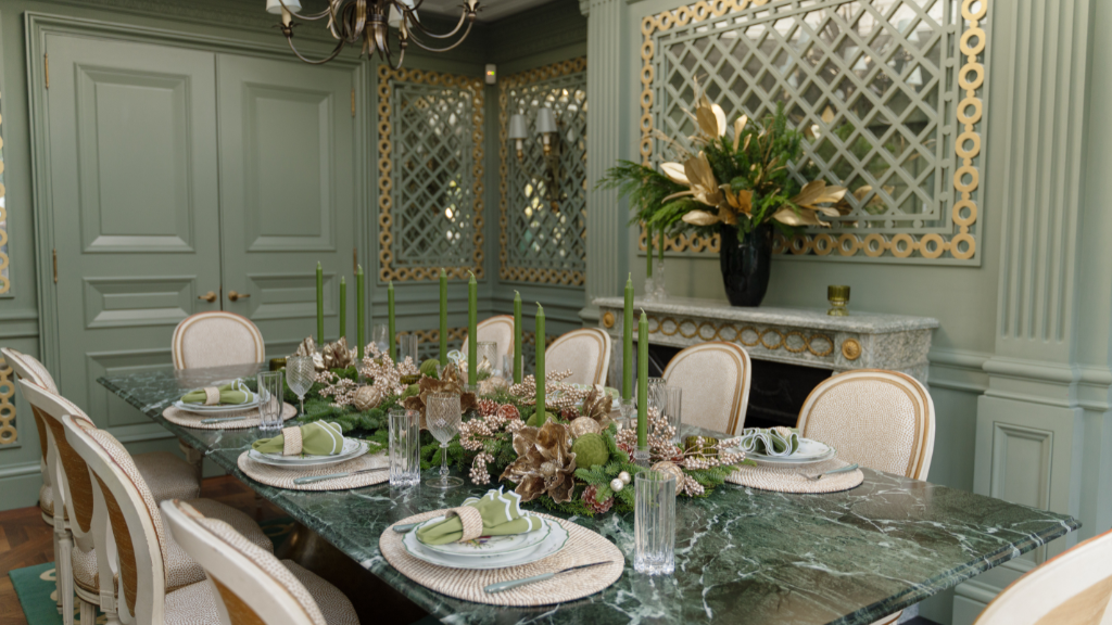 Для средневекового человека рождественский пир был единственным днём настоящего изобилия после долгого поста. На стол ставили всё лучшее — мясо, сладости, тот самый пудинг, который символизировал благополучие семьи. Во времена Виктории рождественский стол превратился в театр: свечи, цветы, маленькие подарки для гостей, тщательно подобранные ткани — прием гостей и накрытие стола (tablescape) стало искусством, где каждый предмет работает на атмосферу. Сегодня в Лондоне это целая эстетика: хозяйки заранее выбирают палитру, заказывают флористику, собирают композиции так, чтобы вечер превратился не просто в ужин, а в событие.