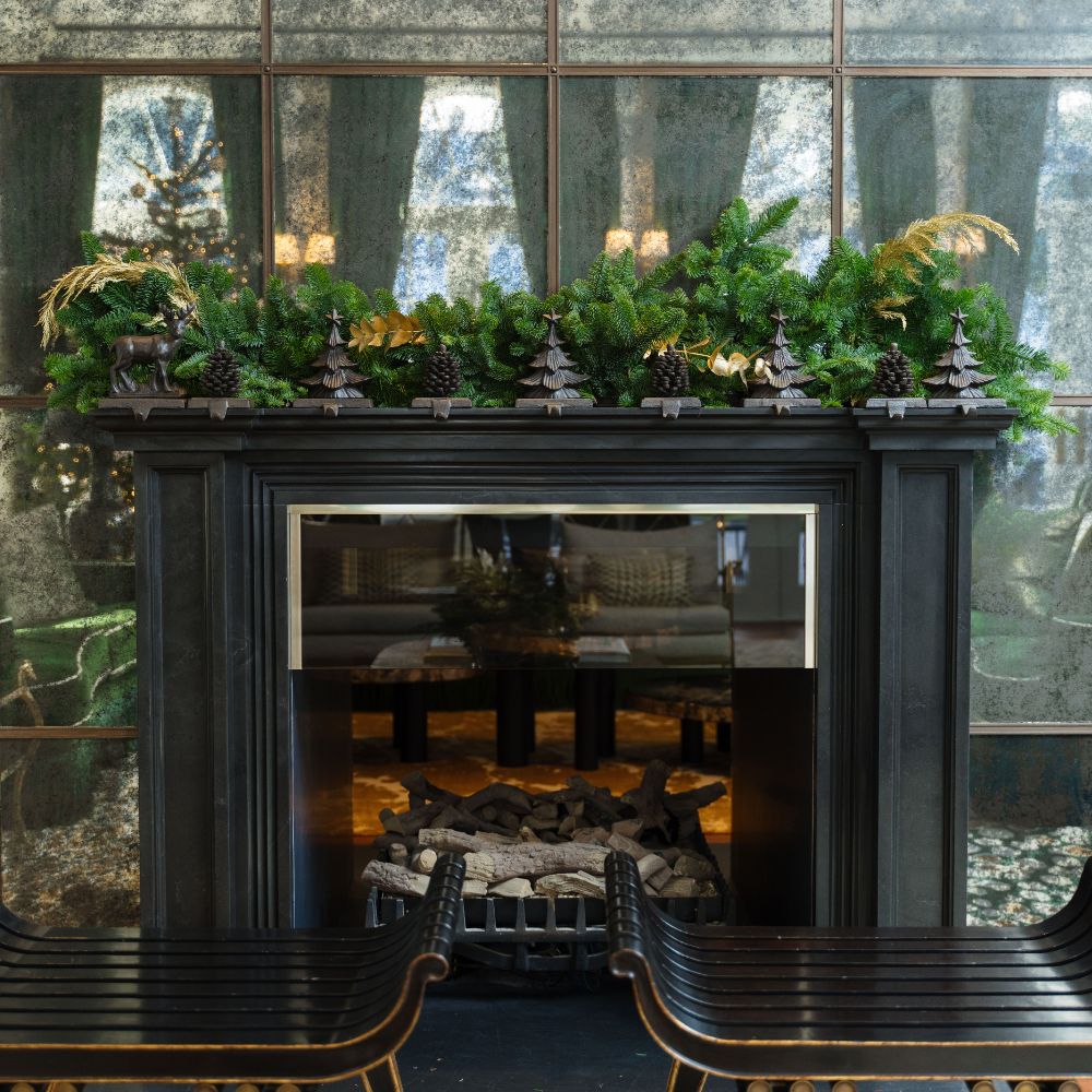 Камин — буквально сердце английского дома. Здесь рассказывали истории, спорили, читали газеты, грели руки и души. С XVII века камин украшали ветвями остролиста, красными ягодами, сложными гирляндами и фруктами. Викторианцы довели этот ритуал до совершенства: камин становился главным символом семейного Рождества, местом, где открывают подарки и фотографируются. Сегодня каминная полка — пространство для творчества: густая зелень, свечи разной высоты, стекло, золото, текстуры. Это композиция, которая делает дом праздничным одним взглядом. Даже если у вас висит телевизор над камином, а не картина или зеркало, то все равно можно подойти креативно к каминной полке и стилизовать ее с душой.