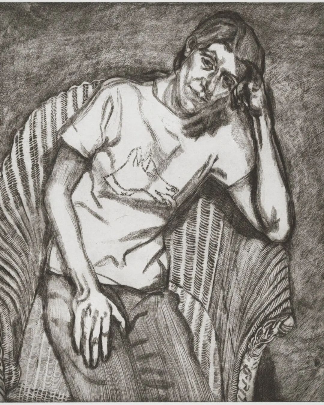 - Bella in her Pluto T-Shirt (etching), 1995 Photo: © The Lucian Freud Archive. All Rights Reserved [2025] / Bridgeman Images. Collection National Portrait Gallery