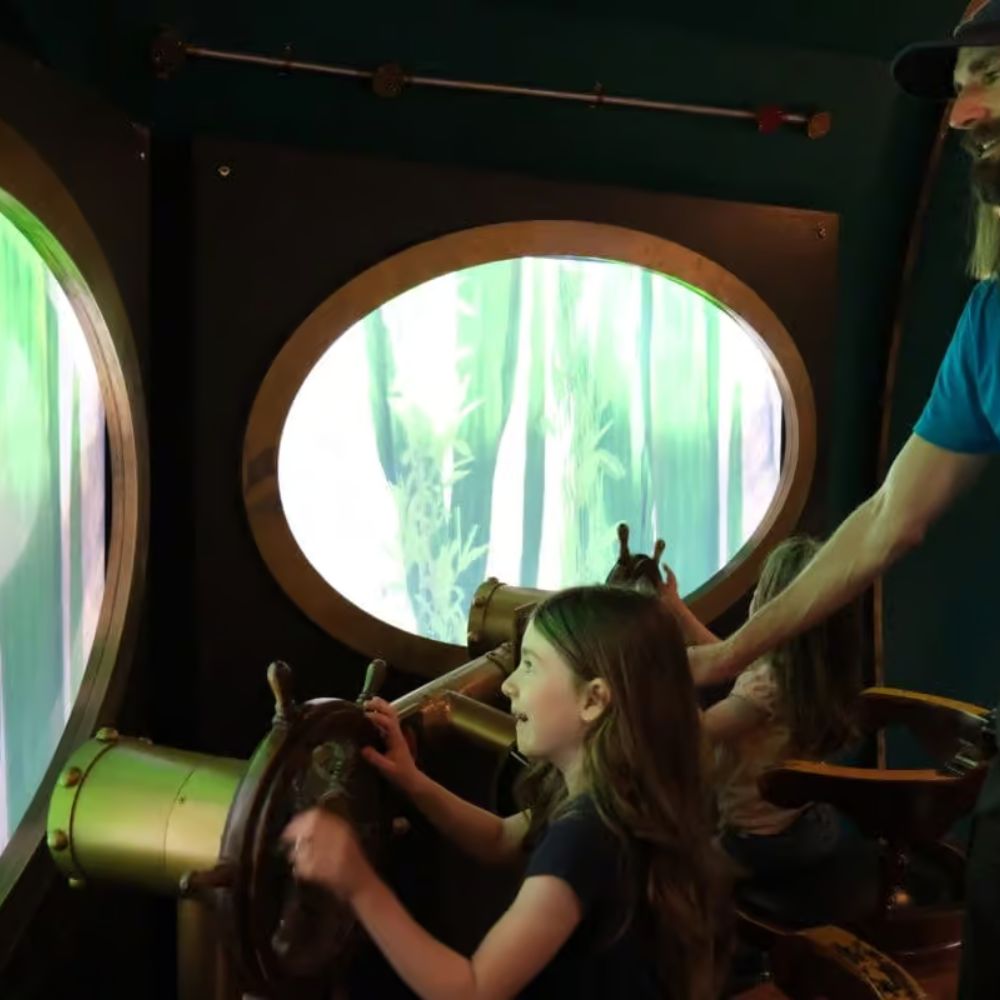 Подводное путешествие, вдохновлённое романом Жюля Верна «Двадцать тысяч льё под водой» — тот редкий случай, когда музей хочется не просто смотреть, а проживать. Всё начинается с посадки на легендарный «Наутилус», а дальше — погружение в глубины океана, встречи с морскими существами и разговор о тайнах Атлантиды. Формат выставки интерактивный: дети становятся участниками экспедиции, а не пассивными зрителями. Это отличный вариант для каникул, когда хочется приключений без экрана и с ощущением настоящего открытия. Подробности и билеты