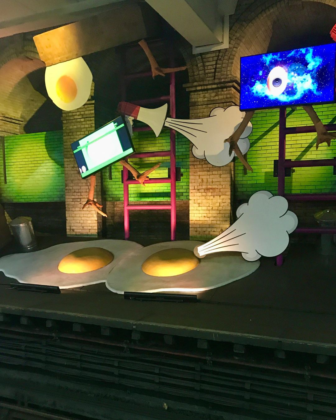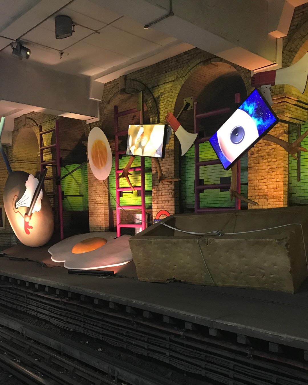- Инсталляция My name is lettie eggsyrub художницы Heather Phillipson на заброшенной платформе станции Gloucester Road Underground Station, 2018 год. Фото: Afisha.London