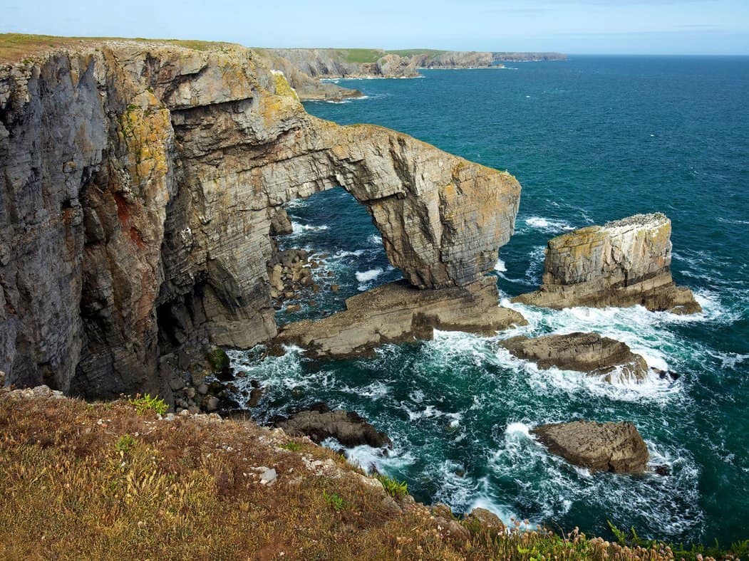 Также на побережье Национального парка Пембрукшир-Кост находится известная весь мир живописная достопримечательность – Зеленый мост Уэльса (Green Bridge). Эта естественная природная арка, образовавшаяся скале достигает в высоту 25 метров.